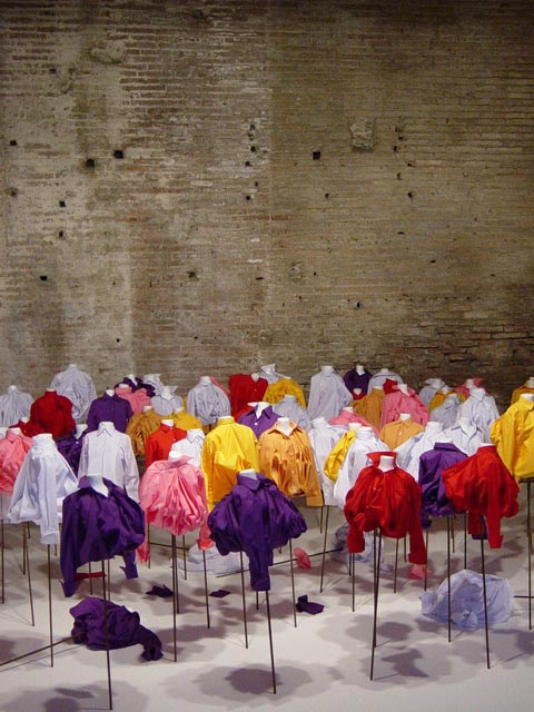 Each artist is shown in one or more old market shops. They measure 4 by 6 meters and the walls are rough antique Roman brick.